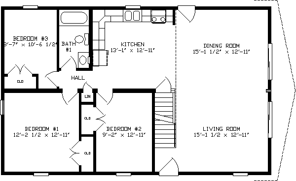 The "Clifton" is a three bedroom, one bathroom home. The large windows located in the front of the home allow for natural light to spill into the home.